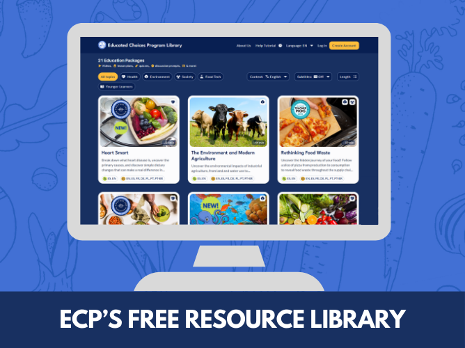 The mission of the Educated Choices Program (ECP) is to provide free, high-quality, science-based education to empower people to make healthy, sustainable food choices. As a global leader in food impact education, ECP recognizes that what we eat is one of the most significant drivers of environmental change. By fostering accessible education and food literacy, ECP equips students with the tools to become informed consumers and effective stewards of a more resilient future, bridging the gap between individual habits and global planetary health.